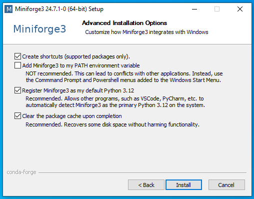 (from the Start menu, search for and open “miniforge prompt”):